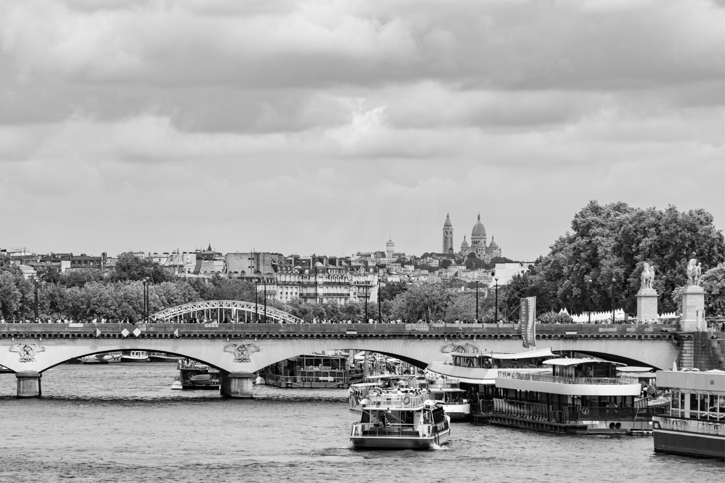 Vue sur la Seine et le sacré Coeur depuis le pont d’Iéna. Il relie la tour Eiffel au Trocadéro. Sur la rive droite, il donne accès à l'avenue de New-York. Sur la rive gauche, il sépare le port de La Bourdonnais du port de Suffren et croise le quai Jacques-Chirac, au niveau de l'esplanade des Ouvriers-de-la-Tour-Eiffel.